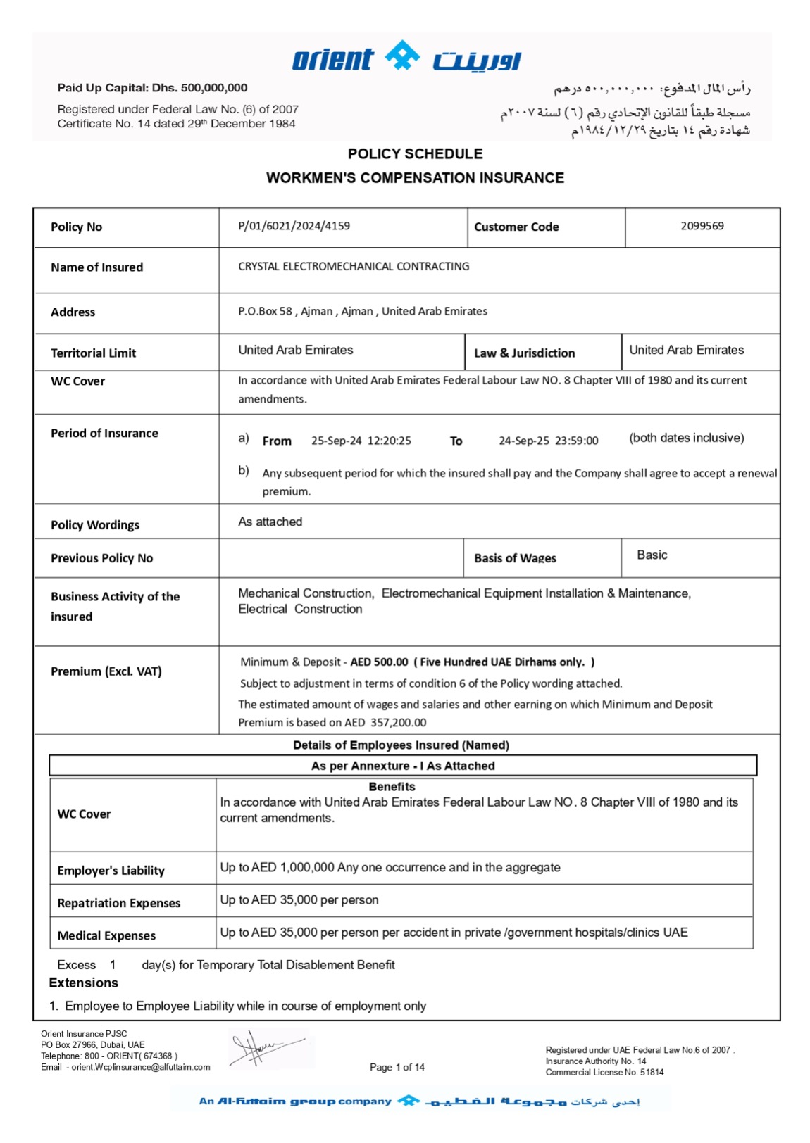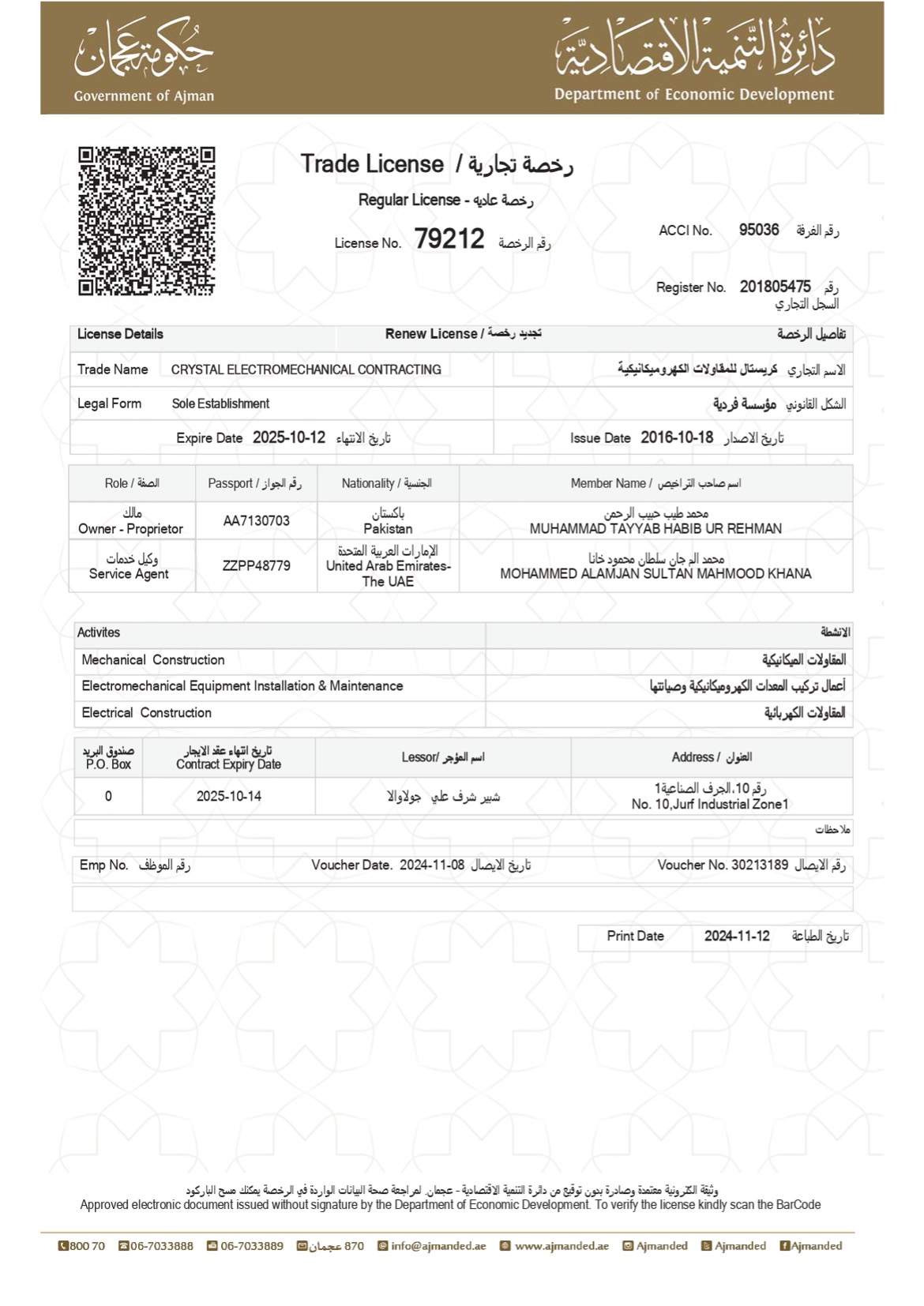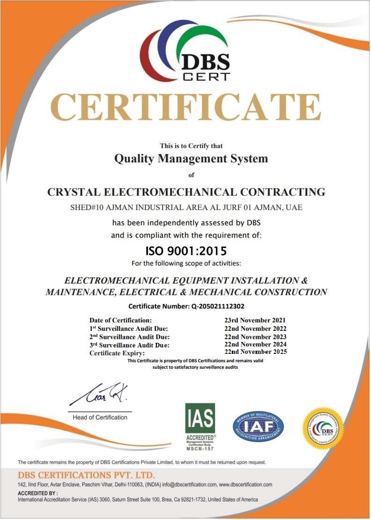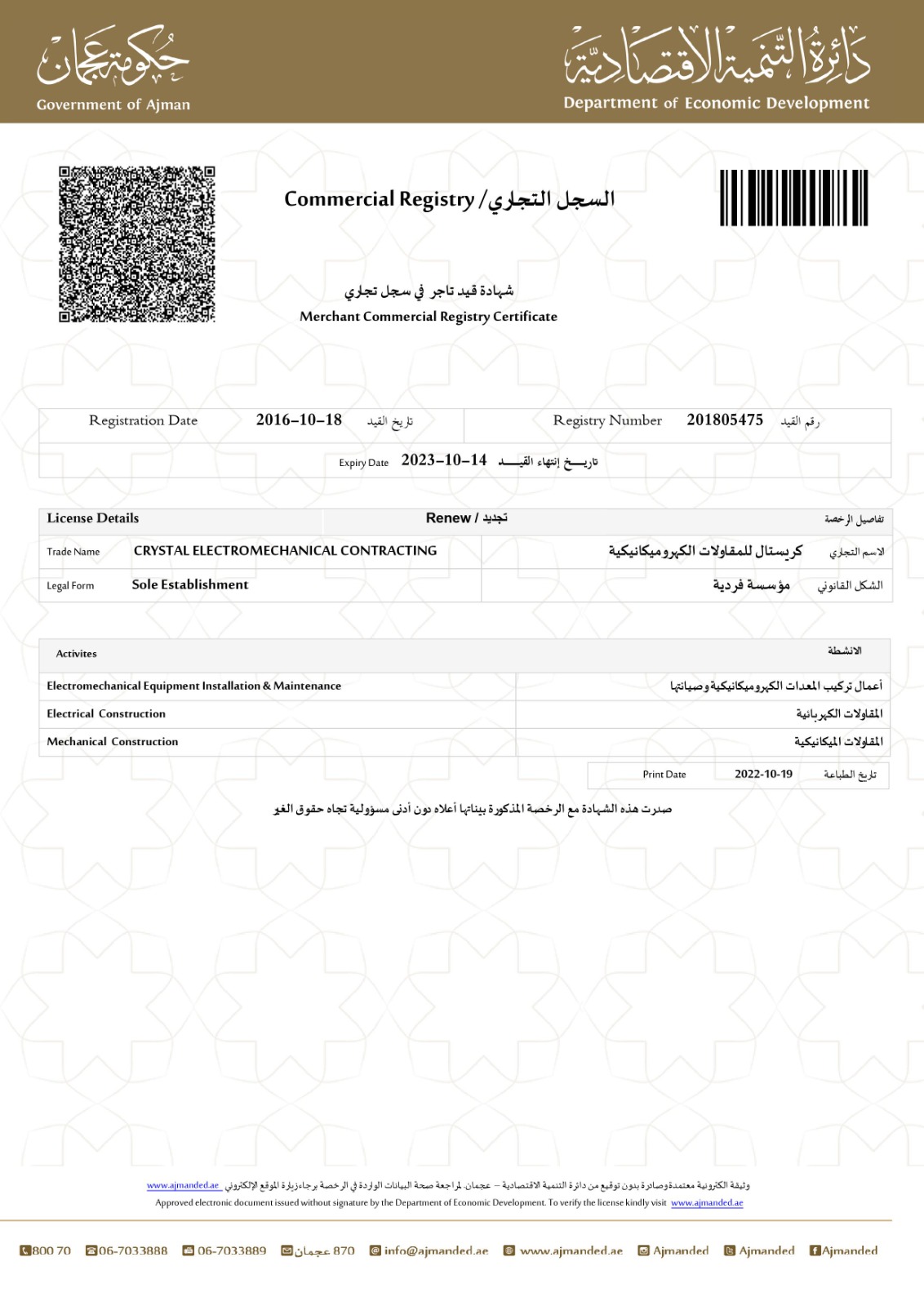 Established in 2016, Crystal Electromechanical Cont. (CEMC) Engineering services in 2016 AJMAN, United Arab Emirates dealing with Industrial fabrication, maintenance & machinery assembly, Installation, testing & commissioning within a short Span the group has expanded and diversified into the high growth industries, Oil & Gas, Power, chemical, Cement, Sugar, Feed mills